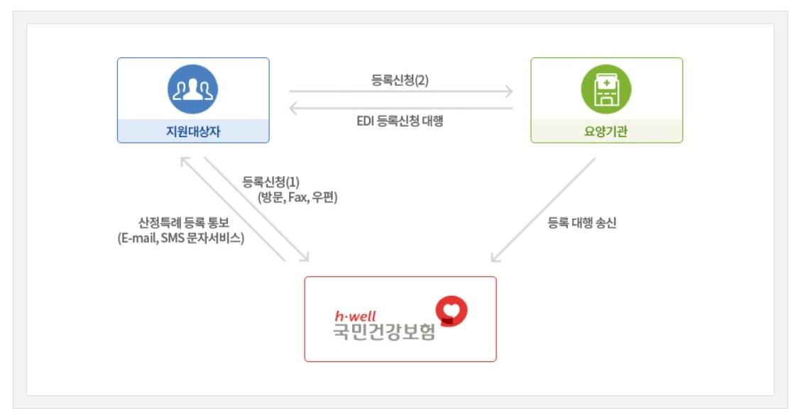 - 대상자 : 공단에 등록신청(병원등록도 가능)